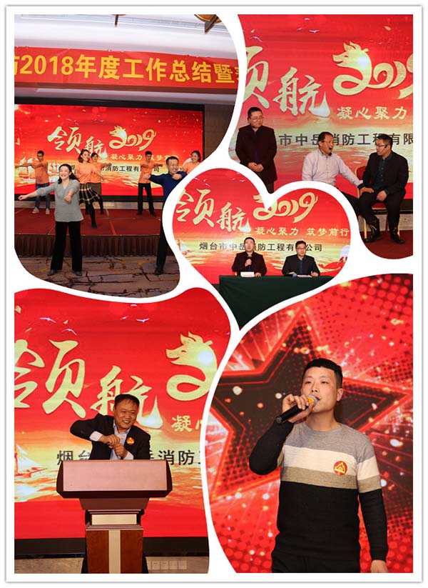 2019年1月26日,公司全體員工齊聚煙臺麗景華僑大酒店,召開“中岳消防2018年度工作總結暨表彰大會”,大會上譚總對2018年公司情況進行了總結并對2019年做了規劃;領導們對優秀個人及優秀部門、班組給予表彰;員工們同樣也是熱情飽滿,都積極參與表演精彩節目。
